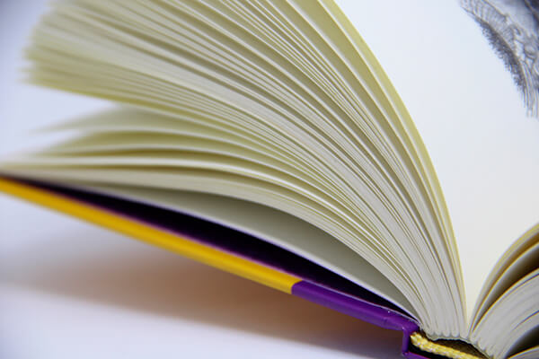 Libros impresos en blanco y negro encuadernados con tapa dura y fresada.